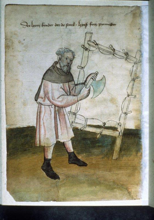Wat verrassend zo een spanraam te zien waar wij in onze tijd nog mee werken. Zo een professioneel ontwikkeld raam duidt erop dat er volop ervaring was, dat perkament al veel langer in gebruik moet zijn geweest. Deze huiden bewerkers te midden van ander beroepen (bovenste rij: ciseleerders, vazen bewerkend, middelste rij: huiden bewerkers, onderste rij: beeldhouwers en meubelmakers) duidt erop dat perkament maken een heel gewoon ambacht was te midden van vele andere.