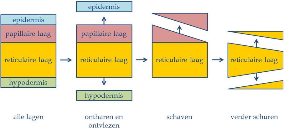 De bewerkingen die nu volgen zijn erop gericht de huid nog verder te reinigen, de huid soepel te maken en de oppervlaktes te bewerken voor het geëigende doel.